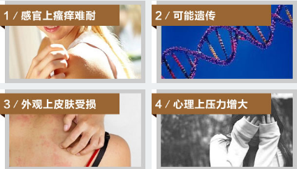急性湿疹伴随剧烈瘙痒感,患者极易抓挠,尤其是夜间,瘙痒感加剧,患者常因此夜不能寐,长时间治疗不可以导致精神萎靡,烦躁及精神因素障碍。