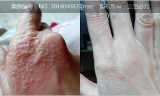 【治疗】首先过敏原检测,要求患者尽量避开过敏原。采用特色中药调理脏腑血液、结合中药熏蒸透皮给药。