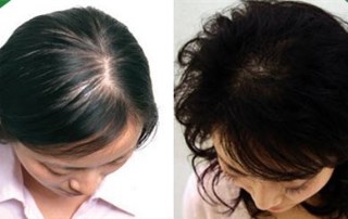 【治疗后】:后来在合肥淮大皮肤病医院皮肤病医院进行了治疗,一年多过去了,周女士已经长出了一头浓密黑发。