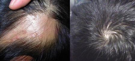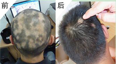 治疗前:常先生是一家网络公司的CEO,由于整天忙于工作,工作压力大,精神过度紧张,原来乌黑的头发变的发枯、发干、萎黄、干燥,并逐渐变秃了,并有逐渐增多秃发的趋势。现在虽然才四十出头,1/3的头发却都快没了,常先生那个着急啊。
