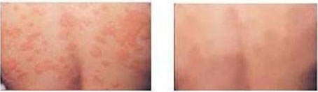 到院后,专家接诊,确诊为“急性性荨麻疹”,后为其制定“中药熏蒸经络免疫疗法”治疗方案。治疗第二天,左俊的荨麻疹开始得到控制,身上起的斑块,不再有痛痒的感觉,斑块渐渐消去;治疗第三天,红斑消去大半。一周后,荨麻疹患处皮肤恢复光洁,没有色素沉着,斑块全消,荨麻疹获得。