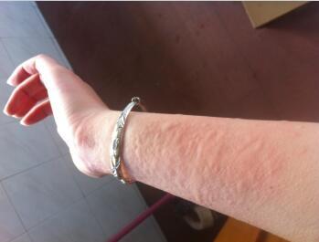 2、皮肤呈红色浮肿片块:有的急性皮损上可有水疱、大疱,称大疱性荨麻疹。
